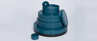 16mm archief filmblik , 600 mtr. / 200 feet / gestabiliseerd / blauw polypropyleen